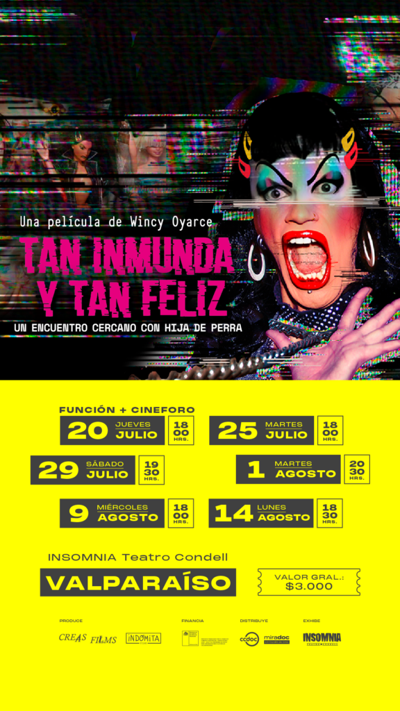 La película Tan inmunda y tan feliz es un encuentro cercano e íntimo con la recordada Hija de Perra, una travesti y artista performática que hoy es un ícono de la disidencia y referente del under latinoamericano.