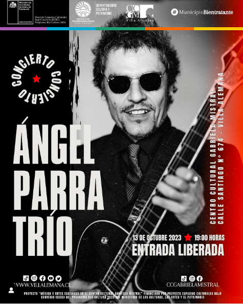 🎸Ángel Parra Trío la banda chilena de jazz latino se presentará este viernes 13 de octubre a las 19:00 horas en el Centro Cultura Gabriela Mistral.