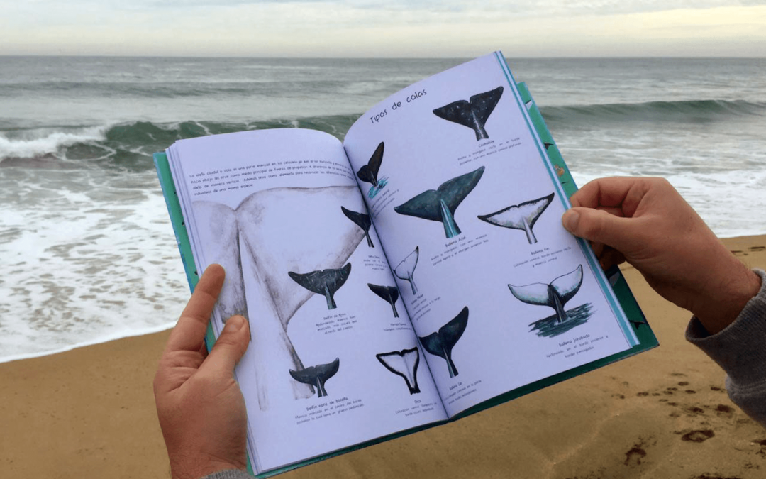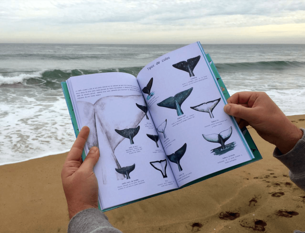 Victoria muestra el recorrido exploratorio de una avistadora de ballenas en su cuaderno de notas, mostrando el proceso creativo detrás del comienzo de esta aventura, llegando a las obras de acuarela, gouache y acrílico, de algunos de los cetáceos más importantes que pasean por nuestras costas.