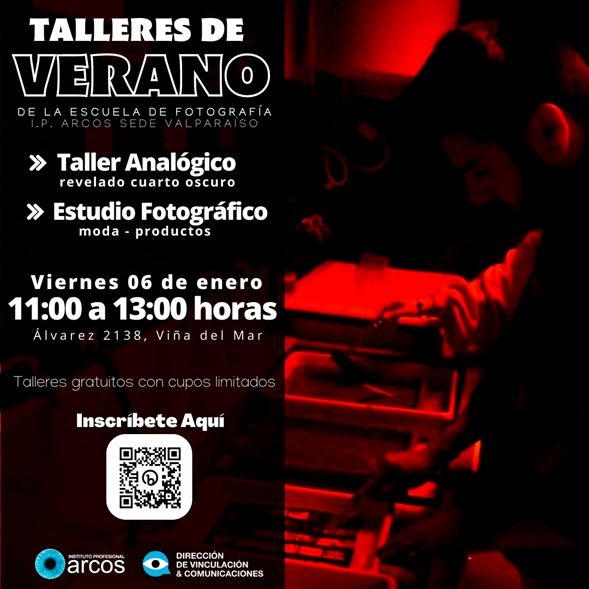 La actividad, organizada por la Escuela de Fotografía de ARCOS sede región de Valparaíso, invita a la comunidad a participar, de manera gratuita, de los talleres “Analógico” y “Estudio Fotográfico”.