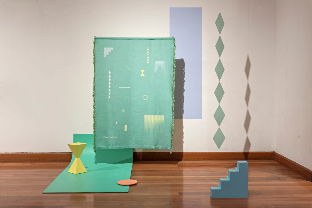 Mediante el uso de la abstracción geométrica y el desplazamiento de la pintura, generará un espacio configurado por una serie de piezas textiles que dialogarán con la arquitectura de Galería Warhola, en el ex Hotel Royal de Valparaíso.