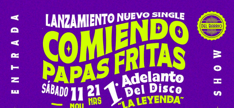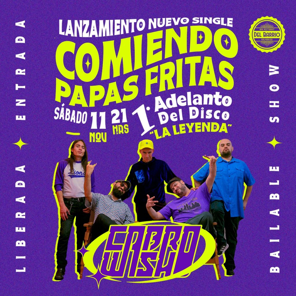 La banda porteña de cumbia Cabro Washo promete una experiencia inolvidable con ocasión del lanzamiento de su nuevo single Comiendo Papas Fritas, a realizarse el sábado 11 de noviembre desde las 21:00 horas en el local Del Barrio (Pedro Montt 2302, Valparaíso), evento de libre acceso para todos los amantes de la música y la buena comida.