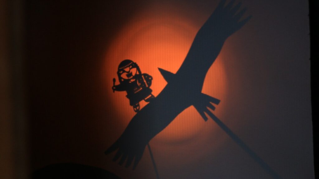 Adelaida Loyer, intérprete y encargada territorial del Punto de Cultura Comunitaria Casa OANI, detalla: “SABIDURÍA nace el año 2014. Me invita la Compañía OANI Teatro a crear una obra para el mes del mar. Fue la primera vez que hice un lambe lambe y lo que me motivó fue poder crear un espectáculo callejero en estas condiciones, llevar el teatro de sombras al espacio público, un gran honor trabajar con la Compañía. Yo venía de estar experimentando con muñecos de carnaval y eso lo estaba llevando al escenario. Me inspiré en la teoría de Pangea, en donde, al principio, todo era un solo continente que luego se partió; en los pueblos polinésicos y en la cosmovisión mapuche”.