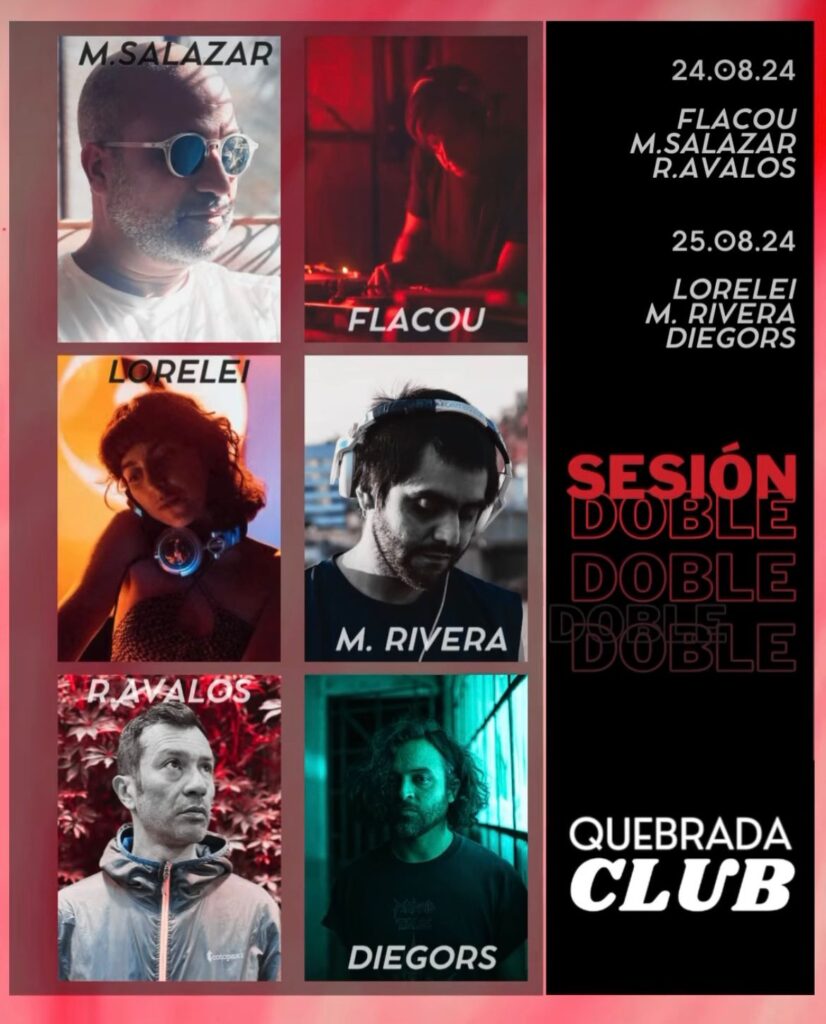 Para más información y compra de entradas, comunícate a través de WhatsApp [+56994304747] o visita las redes sociales en [@quebrada_club]. Y asegura tu lugar en la pista de baile. puedes asistir uno o los dos días.