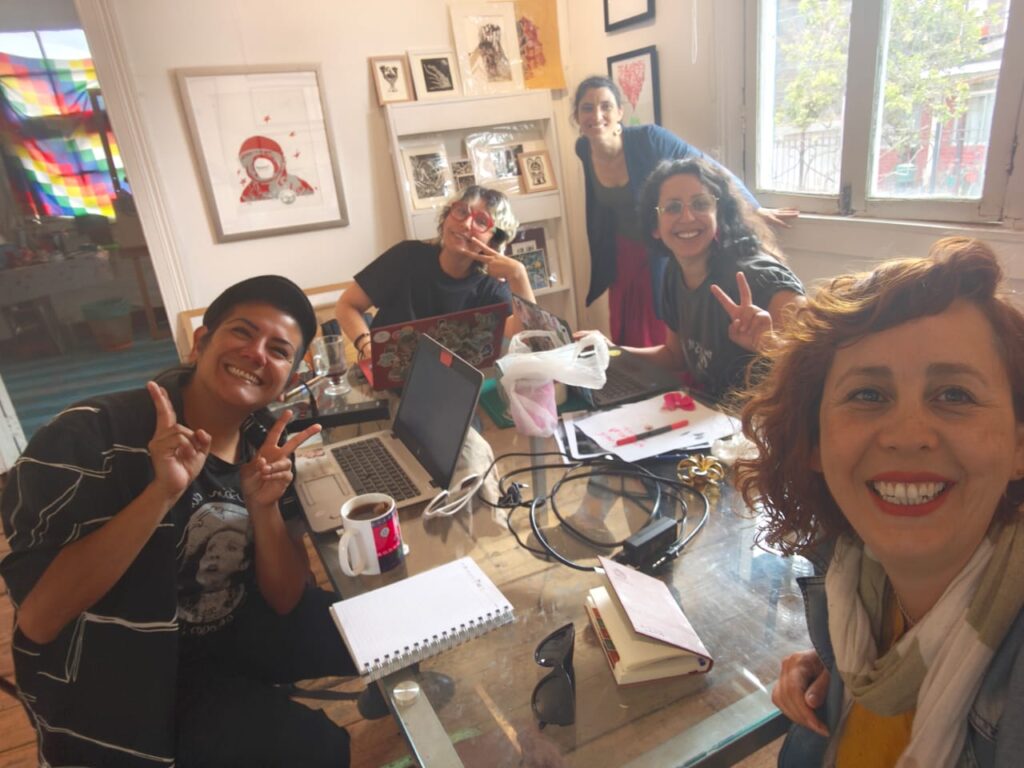 “Somos cinco mujeres: Pamela Espinoza, directora del taller; yo, Gabriela Miranda; Constanza Araya, coordinadora de control administrativo y asistente de producción; Lucila Cardozo, coordinadora de comunicación y diseño; y Ángeles Chamorro, coordinadora de gestión comunitaria, territorio y patrimonio. Además, tenemos una red de 18 artistas de Valparaíso, todas mujeres, que participaron también en la exposición colectiva por los 15 años.”