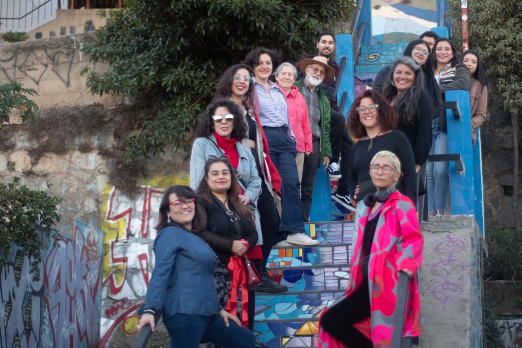 “Somos cinco mujeres: Pamela Espinoza, directora del taller; yo, Gabriela Miranda; Constanza Araya, coordinadora de control administrativo y asistente de producción; Lucila Cardozo, coordinadora de comunicación y diseño; y Ángeles Chamorro, coordinadora de gestión comunitaria, territorio y patrimonio. Además, tenemos una red de 18 artistas de Valparaíso, todas mujeres, que participaron también en la exposición colectiva por los 15 años.”