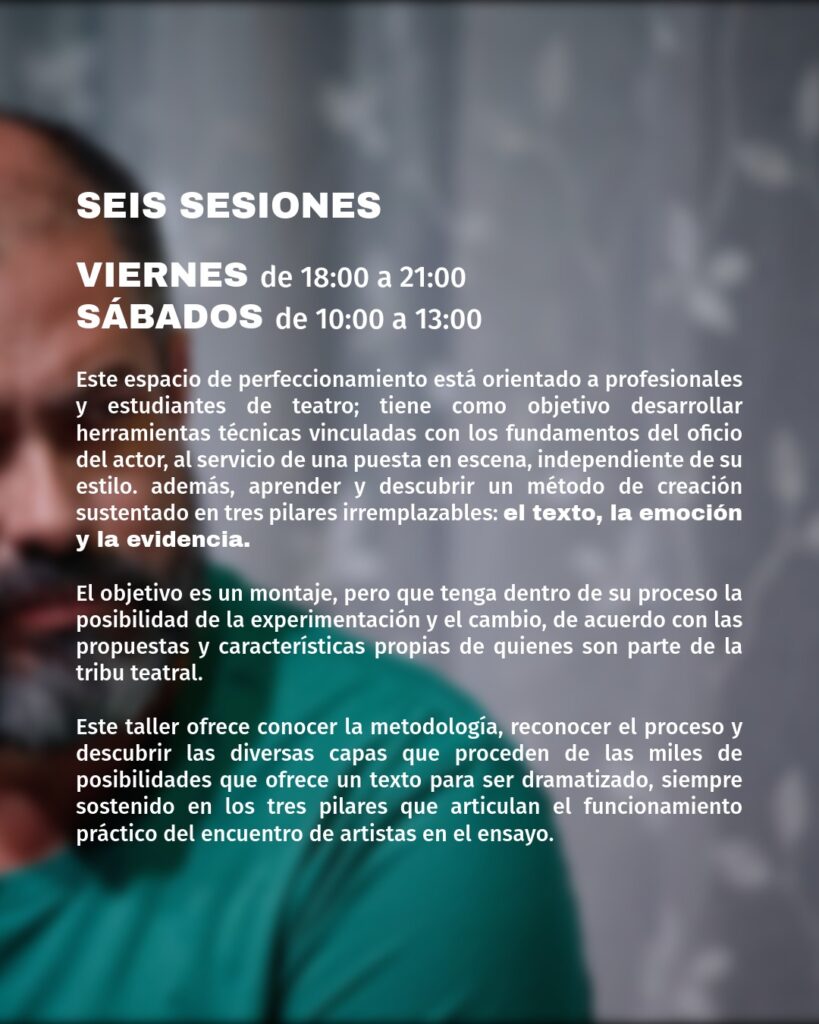 Información del taller: “Texto, emoción y evidencia. Práctica escénica en base al trabajo actoral”
