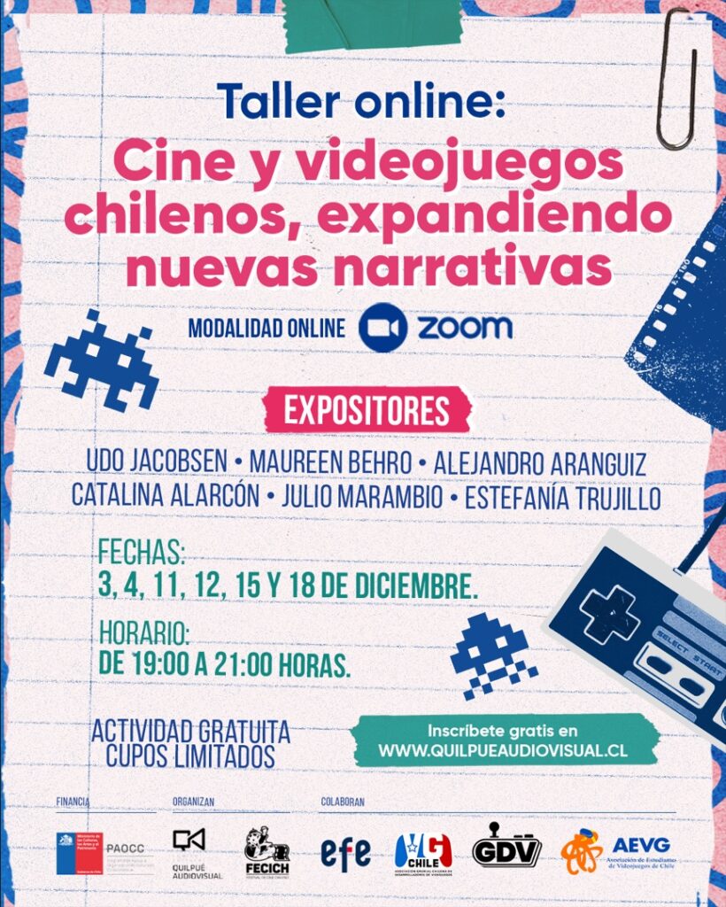 Con el objetivo de seguir impulsando instancias de formación en torno a la cinematografía nacional y abrir camino a los nuevos medios, el Centro Cultural Quilpué Audiovisual invita a participar del taller online “Cine y videojuegos chilenos, expandiendo nuevas narrativas”.