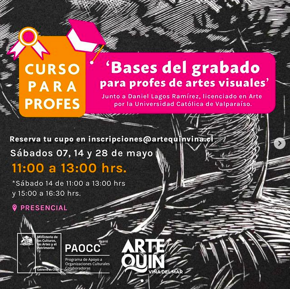 Artequin Viña te invita al curso «Bases del grabado», una actividad entretenida pensada para profesores y profesoras de artes visuales, pero abierta a todo público. Se trata de una serie de 4 sesiones para aprender los primeros pasos teóricos y prácticos en el arte del grabado, con el objetivo de después enseñar en clases en cursos de básica o media.