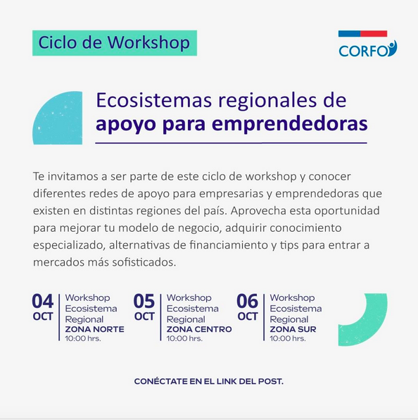 Las invitamos a esta serie de encuentros virtuales para conocer toda la oferta de apoyo a los negocios en cada Región, información que se entregará en vivo de manera personalizada.