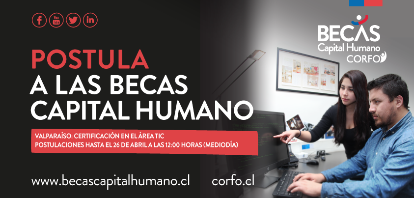 Hasta el 26 de abril se podrá postular a las Becas de Capital Humano de Corfo en la convocatoria para la región de Valparaíso para la certificación SFIA, que corresponde a competencias de la industria de las Tecnologías de la Información.