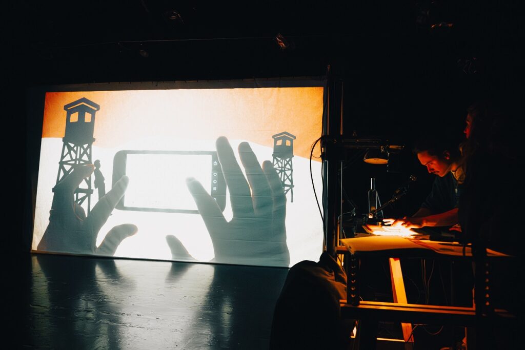 “Hubo que encontrar un lenguaje para cada dimensión del espectáculo. El aspecto documental y contemporáneo del relato aparece a través del iPhone filmado en directo. Las palabras del Cuervo están ilustradas con papel recortado, mientras que los apartes de Oscar y Cosme se traducen de manera más concreta, mediante documentos ‘formales’: fotografías, archivos y objetos. La invención del dispositivo escénico es a la vez sencillo y sofisticado: un proyector colocado bajo una placa de vidrio proyecta fondos de color y video sobre papel, donde se manipulan los diversos materiales”.