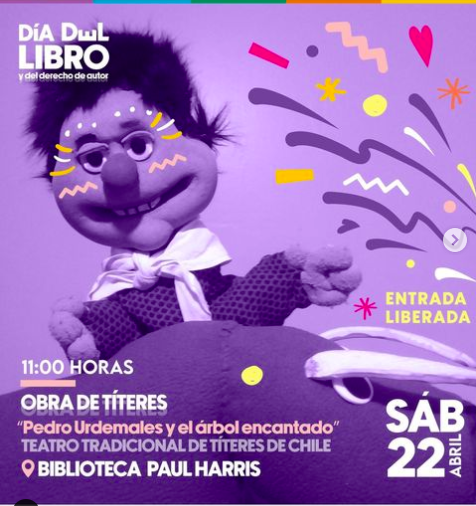 🎭Desde las 11:00 horas los niños y niñas podrán disfrutar de la Obra de Títeres “Pedro Urdemales y el árbol encantado” de la Compañía Tradicional de Títeres de Chile @teatrotradicionaltitereschile . Un espectáculo infantil que nos invita a disfrutar de este personaje, figura de larga tradición oral y de varias obras literarias.