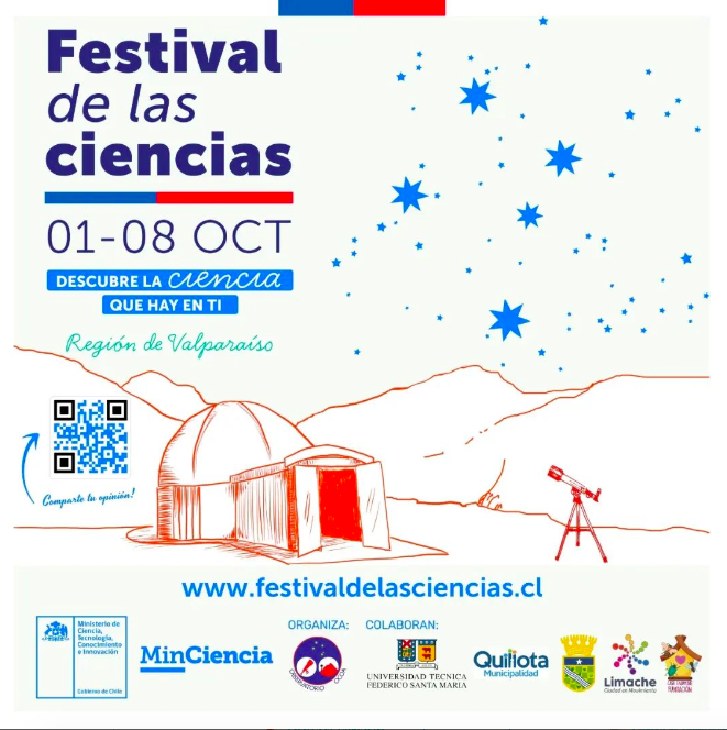 Se acerca un nuevo Festival de las Ciencias en nuestra región. Este es un proyecto del Ministerio de la Ciencia @min_ciencia que busca acercar la astronomía a la comunidad de la región de Valparaíso y cuenta con actividades en Limache @munilimache , Quillota @muniquillota , Valparaíso @municipiovalpo, Calle Larga @munidecallelarga e Hijuelas @muni_hijuelas .