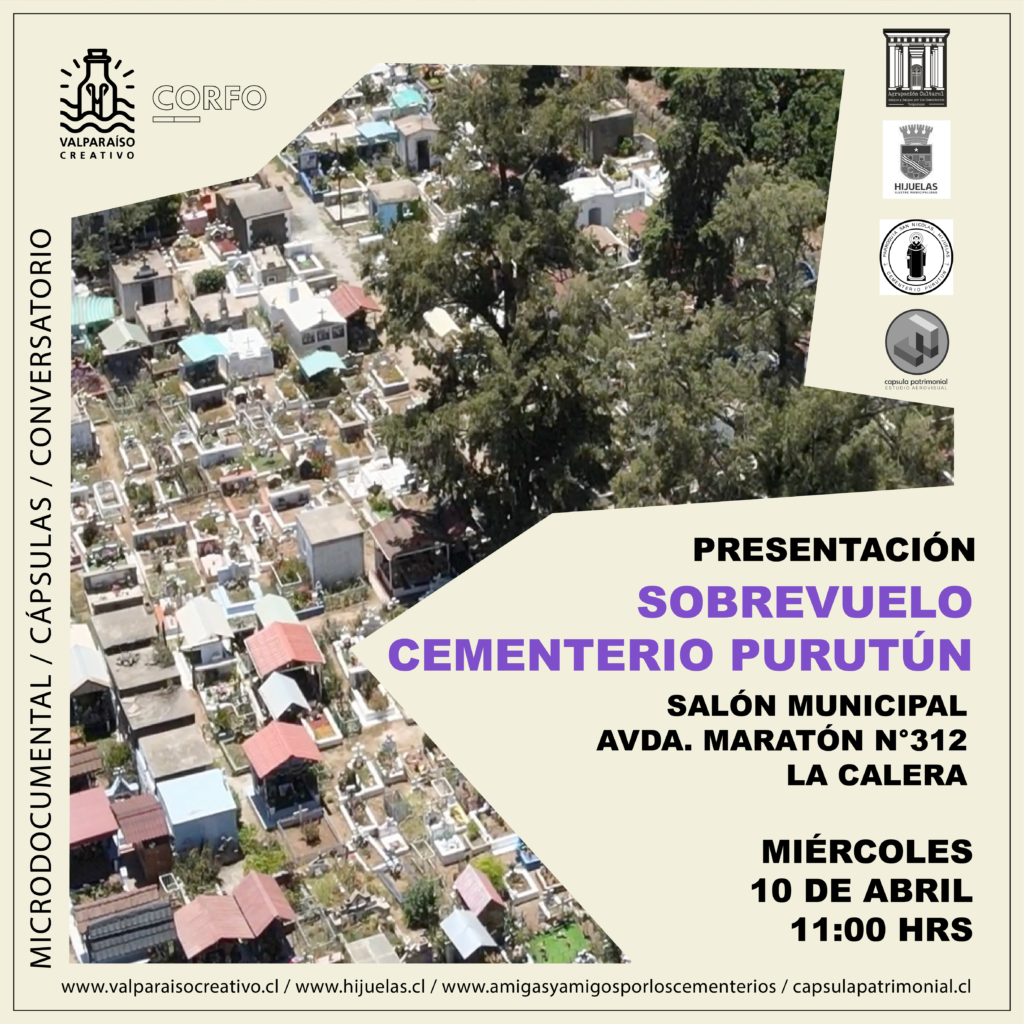 Este próximo 10 de abril a las 11:00hrs. comenzarán los lanzamientos y conversatorios en torno a las cápsulas audiovisuales de cementerios e hitos patrimoniales de la Región, que incluyen cuatro puntos de la Región que se ponen en diálogo y valor a través del material audiovisual de investigación recopilado y gestionado por Cápsula Patrimonial, en conjunto con Agrupación Cultural Amigas y Amigos por los Cementerios.