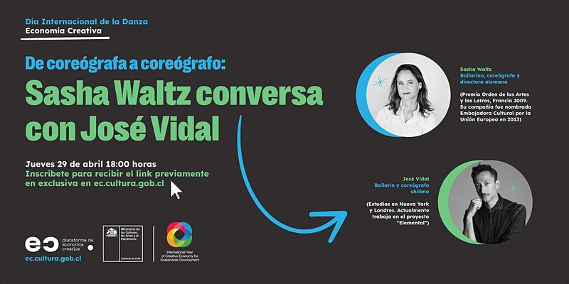 La Plataforma de Economas Creativas presenta: De coreógrafa a coreógrafo es una entrevista que realizó online el 14 de abril el coreógrafo y bailarín chileno José Vidal a la reconocida y premiada bailarina, directora y coreógrafa Sasha Waltz, desde Alemania, donde se encuentran.
