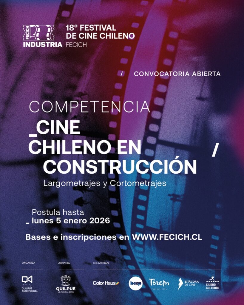En este contexto, el festival nuevamente invita a realizadores/as chilenos/as, que tengan largometrajes de ficción y documental entre 60 y 100 minutos y cortometrajes de ficción y documental entre 5 a 30 minutos en etapa de postproducción, a participar de la competencia CINE CHILENO EN CONSTRUCCIÓN FECICH 2026.