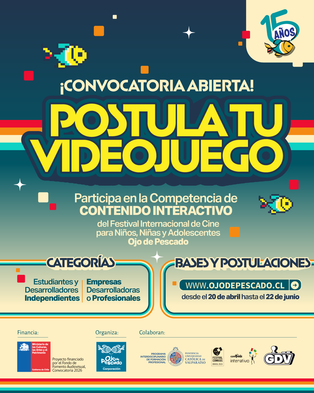 El Festival Internacional de Cine para Niños, Niñas y Jóvenes Ojo de Pescado, abre la convocatoria a la segunda edición de su Competencia de Contenidos Interactivos, que en esta ocasión estará enfocada exclusivamente en videojuegos.