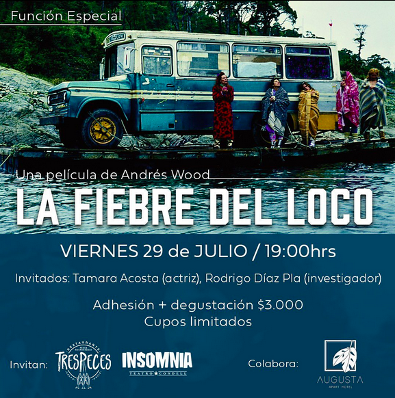 Pero no cualquier cine, proyectarán un clásico del cine chileno como es “La fiebre del loco”, del director chileno Andrés Wood, una película que nos permite conocer más sobre la historia reciente de nuestro país y conversar sobre temas tan vigentes como bienes comunes, explotación de recursos naturales, desarrollo sostenible y pesca sustentable.