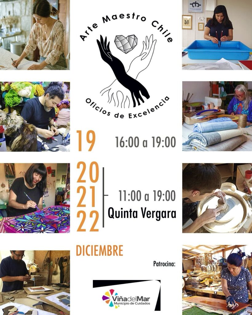 Una agrupación de artesanos locales invitan a la Expo feria de artesanía de excelencia llamada “Arte Maestro Chile”, cuyo nacimiento surge hace pocas semanas atrás, y gracias a innumerables gestiones, lograron la gestión de instalarse en la Quinta Vergara, entrada Sigall (acceso principal) .