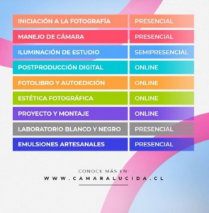 Puedes conocer los precios y más información en detalle sobre los contenidos de los talleres en http://www.camaralucida.cl/talleres