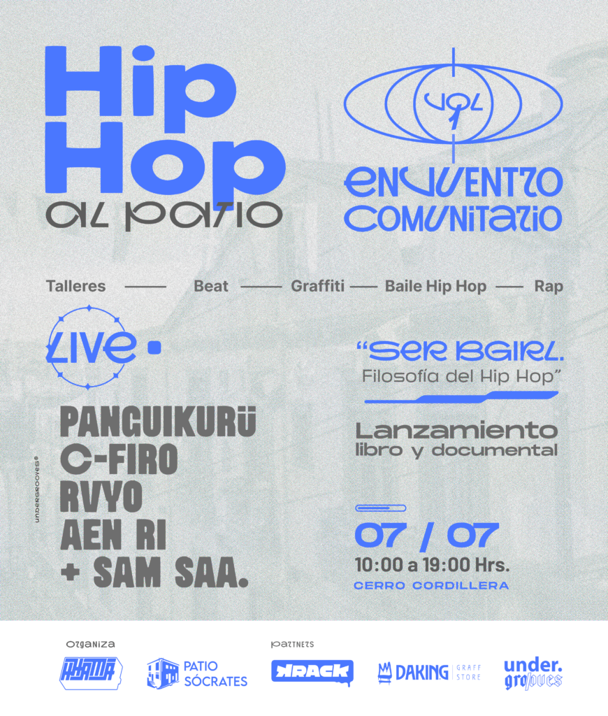 Organiza: Patio Sócrates, Hip Hop a Mar Abierto. Partners: @pinturas_krack / @dakingchile.