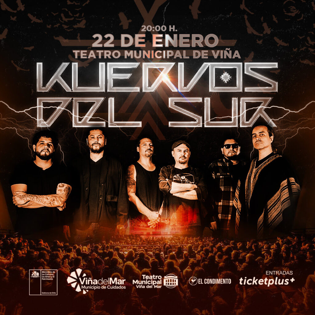 Luego de un exitoso paso por el Viña Rock Festival en noviembre pasado, en la Quinta Vergara, la agrupación de Rock Folclórico Kuervos del Sur, vuelve a Viña del Mar para presentarse en el Teatro Municipal.
