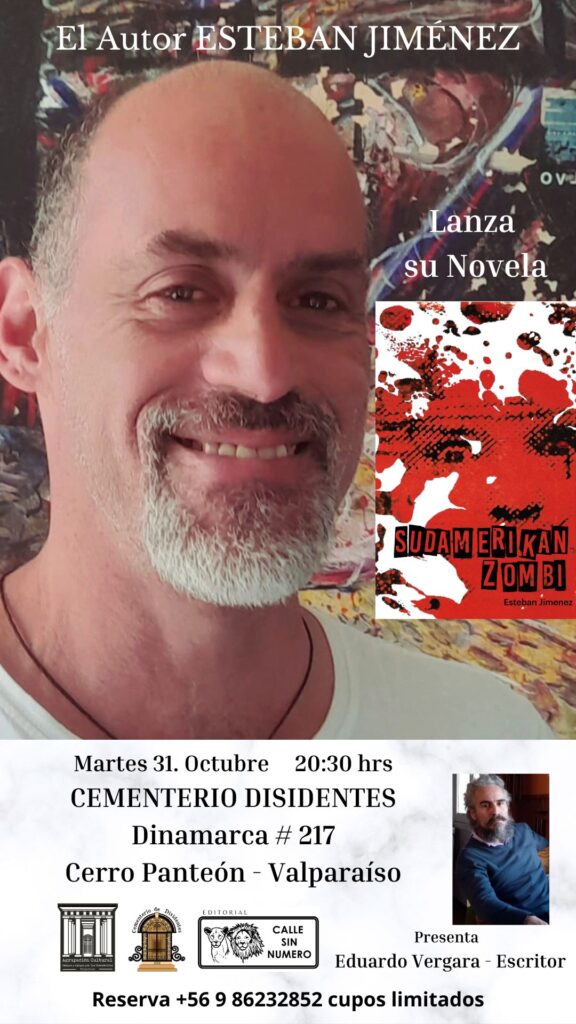 Este 31 de octubre el Cementerio Disidentes invita al lanzamiento del libro «Sudamerikan Zombie» del autor Esteban Jiménez, para pasar una noche especial en torno a la literatura.
