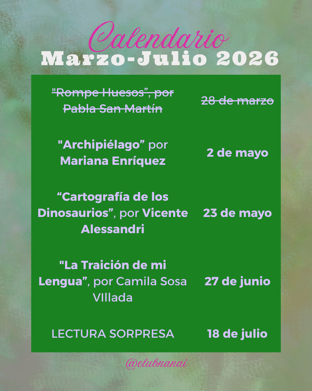 - 18 de julio | Lectura sorpresa (se confirmará más adelante).
