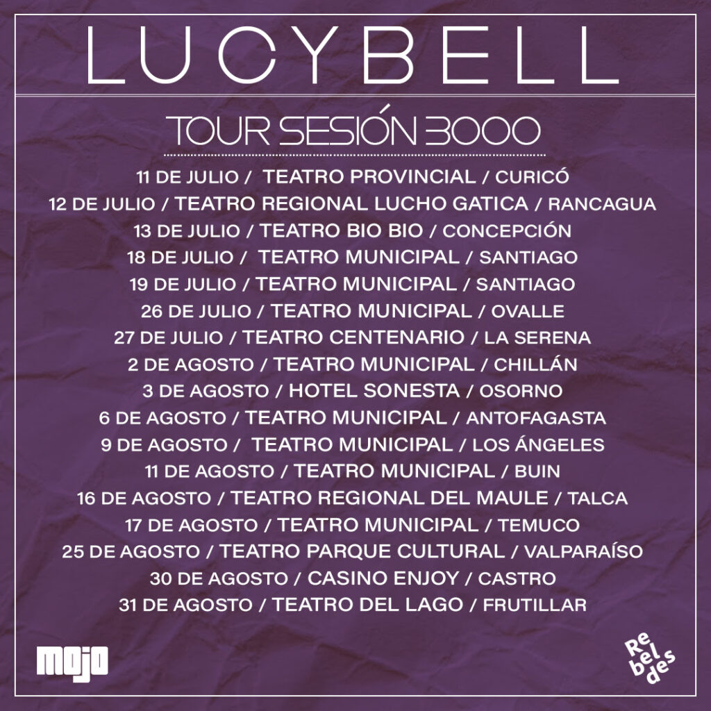 Con un total de 17 fechas a lo largo del norte, centro y sur, Lucybell se prepara para recorrer el país con su esperado tour “Sesión 3000”, donde su fanaticada podrá disfrutar de nuevas reediciones y temas inéditos.