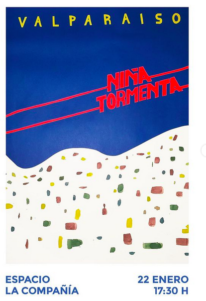 Niña Tormenta presenta en Espacio La Compañía de Valparaíso, un concierto en el que se podrán escuchar las canciones de su nuevo disco “Las cosas lento” y en el que presentará a su banda, formada por Macarena Galaz (bombo legüero y voz), Chini Ayarza (teclados y voz) y Alvaro Solar (guitarra eléctrica) en un formato que mezcla los sonidos acústicos con capas eléctricas y con el cual se presentó en el festival BIME PRO de Colombia en mayo de este año.