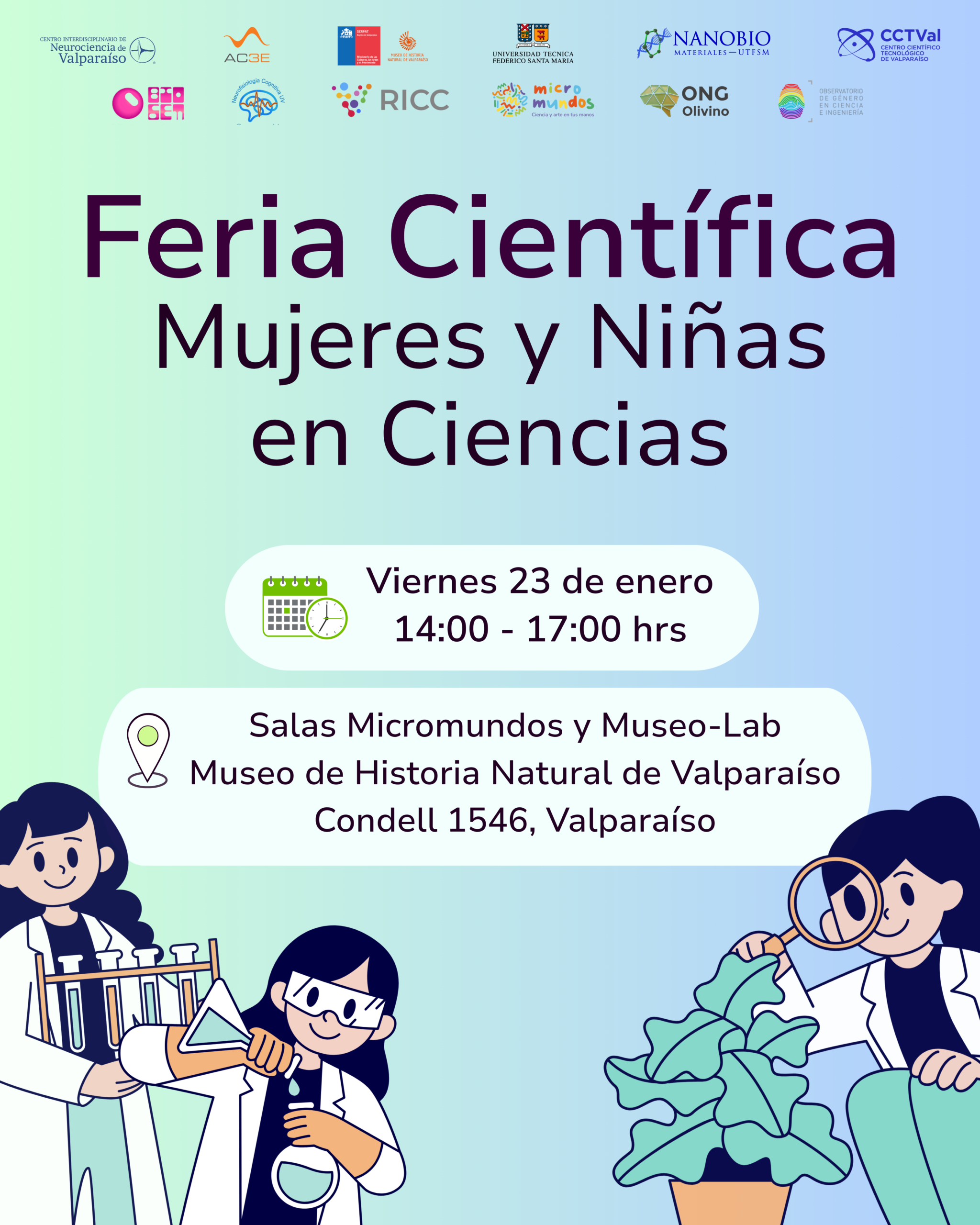 El viernes 23 de enero, entre las 14:00 y las 17:00 horas, se realizará en el Museo de Historia Natural de Valparaíso la Feria Científica “Mujeres y Niñas en Ciencias”,