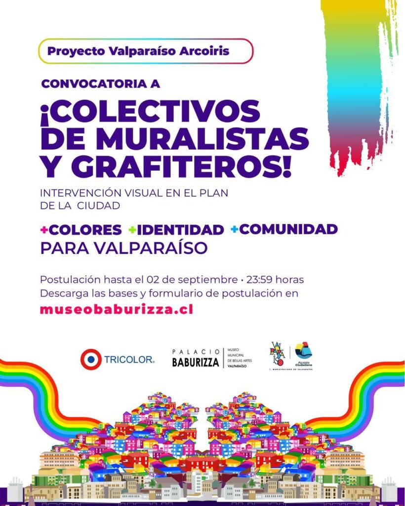 ¡Pintemos nuestro plan de múltiples colores! Si eres parte del muralismo o de algún colectivo muralista, te invitamos a participar del Proyecto Valparaíso Arcoíris de la Alcaldía Ciudadana.