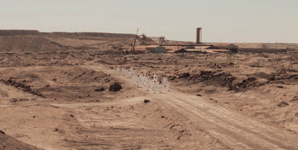 Dirigido por Aníbal Jofré (Volantín cortao, 2013) y producido por Felipe Morgado (Oasis, 2024), Pampas marcianas es un largometraje que combina distintos géneros para hablar de la precariedad y el abandono en el norte de Chile y el delirio que genera vivir en medio del Desierto de Atacama. Pampas marcianas fue realizado colaborativamente entre el Colectivo MAFI y la comunidad de María Elena, en la Región de Antofagasta. “Cuando filmamos fueron los mismos vecinos y vecinas quienes protagonizaron las escenas, tomaron las cámaras y micrófonos, improvisaron, tuvieron ideas y las filmamos. Todo el proceso de producción fue colaborativo, donde se desvanece la idea de autoría y se hace cine desde lo que sentimos e imaginamos en conjunto, como un gesto político, como una pregunta sobre el futuro”, cuenta Felipe Morgado, productor de la película.