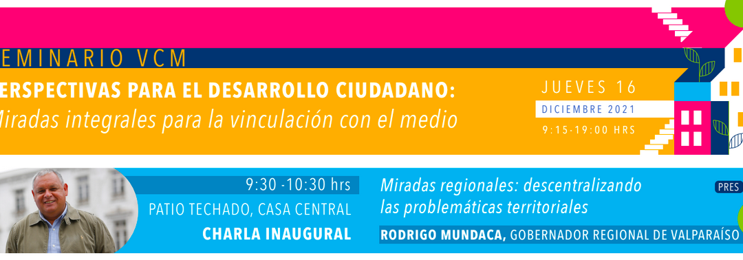 En la charla inaugural “Miradas regionales: Descentralizando las problemáticas territoriales” participará el Gobernador Regional de Valparaíso, Rodrigo Mundaca, quien abordará temas sobre medio ambiente, territorio y políticas públicas.