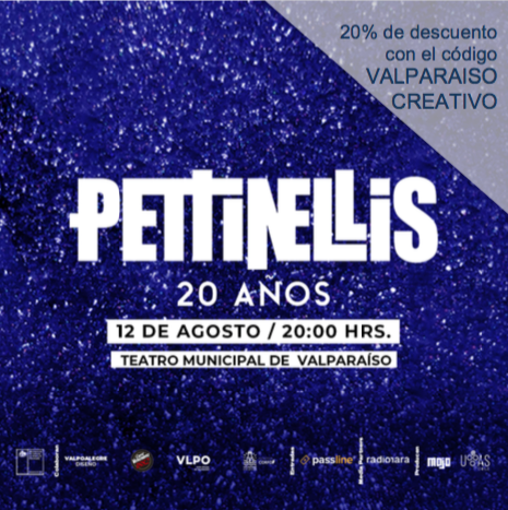 Compra las entradas acá con un 20% de descuento usando el código VALPARAISOCREATIVO https://www.passline.com/eventos-plano/pettinellis-20-anos-valparaiso