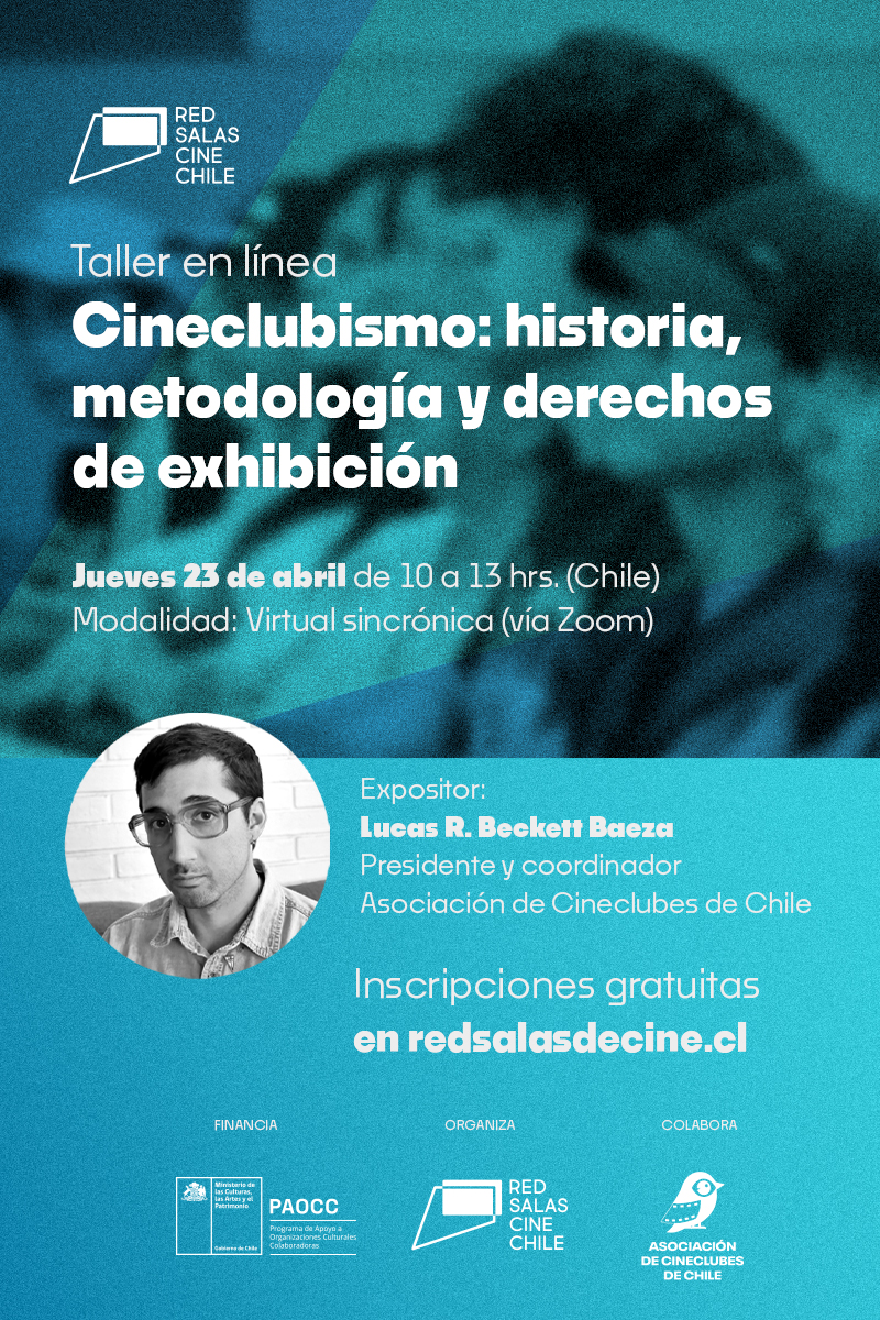 Cineclubismo: historia, Metodología y Derechos de Exhibición, será impartido por Lucas R. Beckett, presidente y coordinador Asociación de Cineclubes de Chile, el jueves 23 de abril de 10.00 a 13.00 horas. Se trata de una charla introductoria al cineclubismo que aborda su historia, principios metodológicos y estrategias de desarrollo. Además, el taller explorará la importancia de los cineclubes y su vigencia en el contexto actual, junto con otorgar herramientas prácticas para su gestión y dar los primeros pasos en la creación de un cineclub, lo que incluye nociones clave sobre derechos de exhibición y propiedad intelectual.
