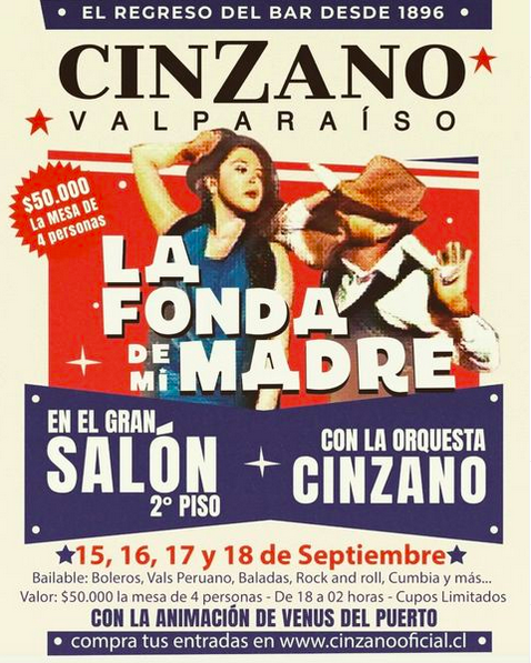Desde el 15 al 18 de septiembre se llevará a cabo La fonda de mi madre en el clásico Cinzano, días de celebración que llegan al mítico bar para aprovechar al máximo las fiestas patrias.