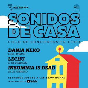 Tres nuevos conciertos serán parte de los eventos musicales que ofrecerá la sede porteña de la corporación cultural Balmaceda Arte Joven esta temporada. Dania Neko (04/02), Lechu (11/02) e Insomnia Is Dead (18/02) serán los artistas locales que se presentarán en este espacio de difusión de la música regional en Valparaíso, que estrenará un capítulo cada jueves a las 12.00 horas.