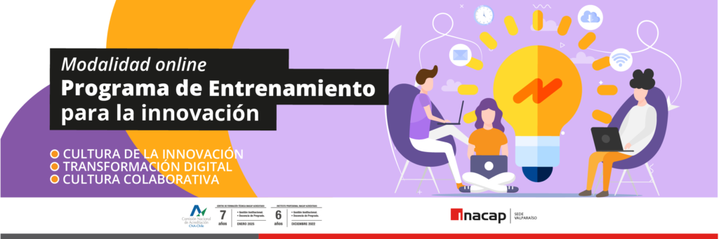 Se encuentran abiertas las inscripciones a los cursos del Programa de Entrenamiento para la Innovación de INACAP Sede Valparaíso, que se impartirán de forma gratuita, en modalidad online y con clases en tiempo real, dirigidos a pymes y toda la comunidad interesada en estas temáticas.