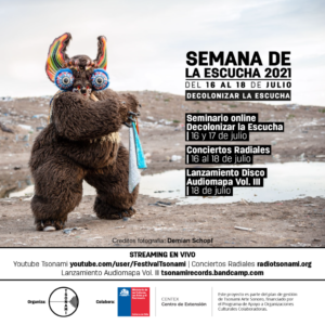 Entre el 16 y 18 de julio se conmemora Semana de la Escucha junto a Tsonami Arte Sonoro, con actividades en línea que estarán centradas en torno a la pregunta sobre el modo en que escuchamos y si es posible acercarse a una decolonización de la escucha, y en qué medida esta puede constituir una experiencia liberada de las estructuras de poder hegemónicas que definen nuestras formas de escuchar.