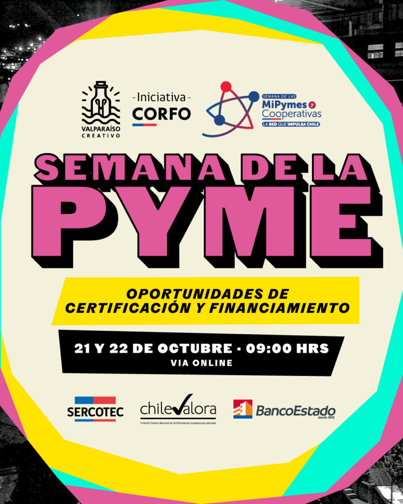 Los días 21 y 22 de octubre se llevará a cabo la Semana de la Pyme 2025, un ciclo de charlas online que busca entregar herramientas prácticas para fortalecer proyectos y emprendimientos creativos en la Región de Valparaíso.