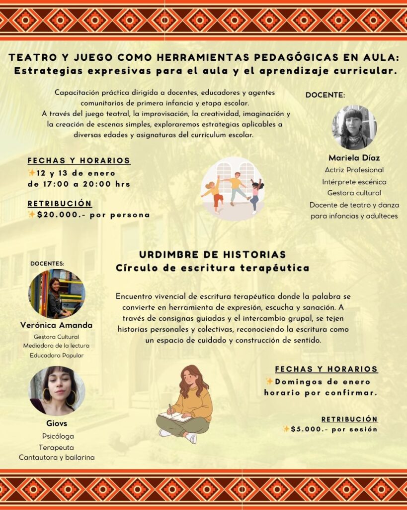 Entre el 5 y el 29 de enero, el Centro Cultural, Social y Educativo Tarpuy desarrollará una programación intensiva de cursos y talleres dirigida a docentes y personas adultas que trabajan con niñeces y juventudes, abordando pedagogías críticas, cultura comunitaria, nuevos medios y artes.