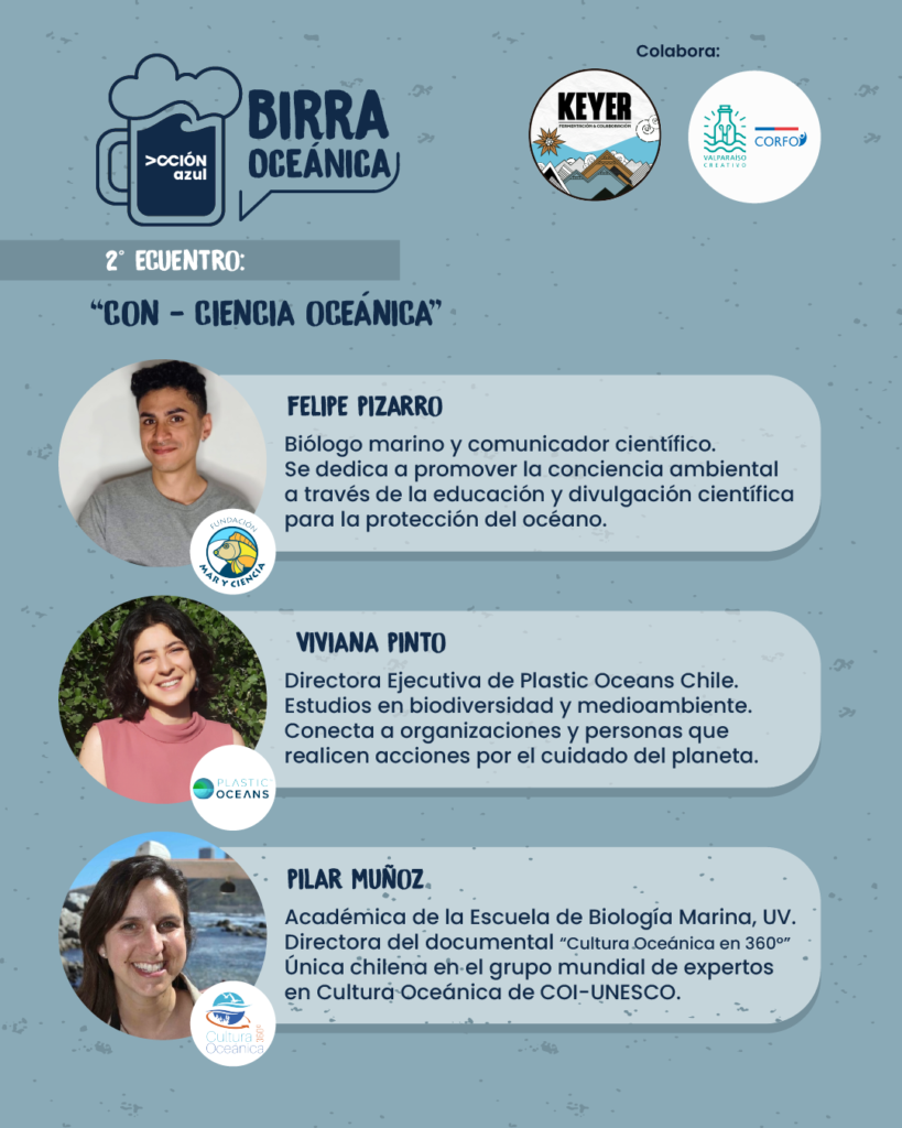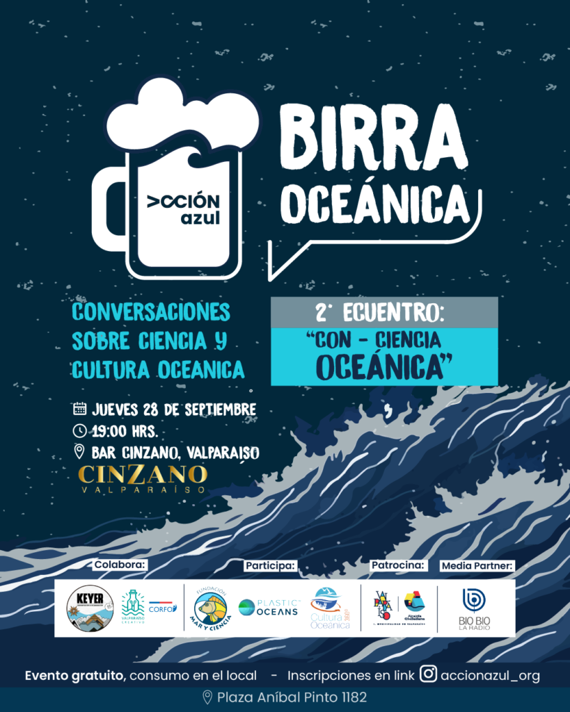 La Birra Oceánica es una iniciativa de @accionazul_org donde conversaremos con expertos sobre ciencia, contingencia y cultura oceánica en bares icónicos de la ciudad puerto de Valparaíso.