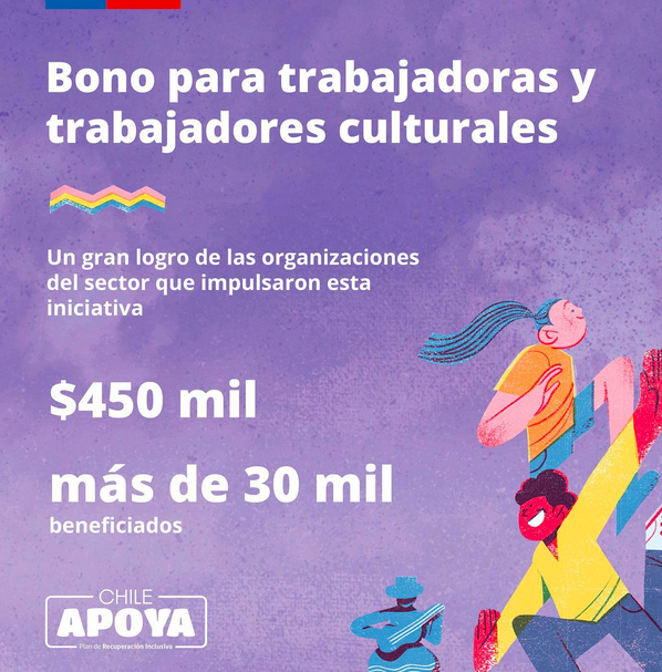 El bono entregará un monto de 450 mil pesos a más de treinta mil trabajadoras y trabajadores culturales que hayan visto afectados sus ingresos por la pandemia. Además, su entrega se priorizará con enfoque de género y perspectiva regional.