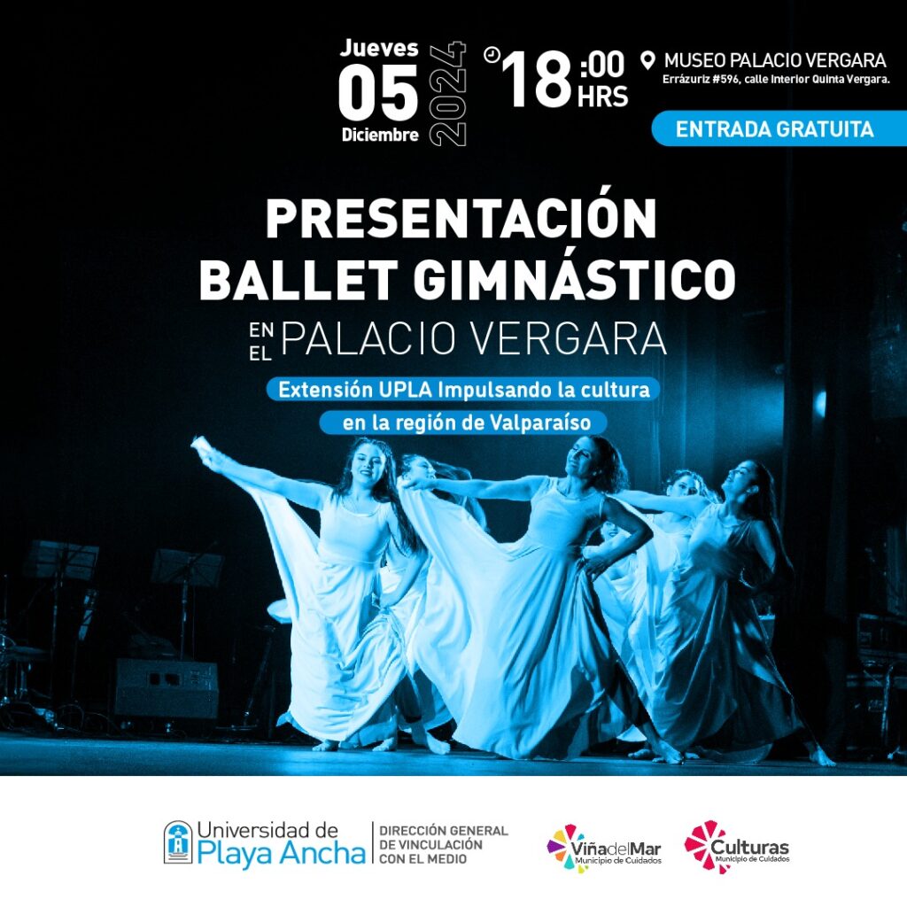 Fundado por la académica Amada Fuentealba Benavides, el Ballet Gimnástico de la Universidad de Playa Ancha es uno de los elencos artísticos más antiguos y prestigiosos de la institución. Con más de 40 años de trayectoria, este grupo ha representado a la UPLA en escenarios de Europa y América Latina, fusionando estilos que abarcan desde el folclor hasta la danza moderna. En esta ocasión, presentarán un repertorio inspirado en ritmos latinoamericanos.
