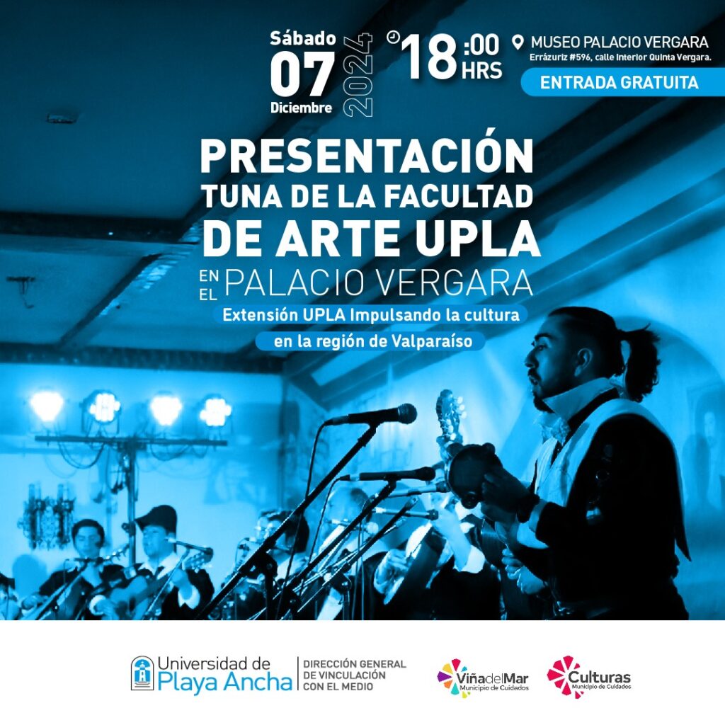 La Universidad de Playa Ancha, a través de su Dirección de Vinculación con el Medio, invita a toda la comunidad a disfrutar de una serie de actividades culturales gratuitas que se realizarán desde el jueves 5 hasta el sábado 7 de diciembre, a las 18:00 horas, en el emblemático Museo Palacio Vergara de Viña del Mar.