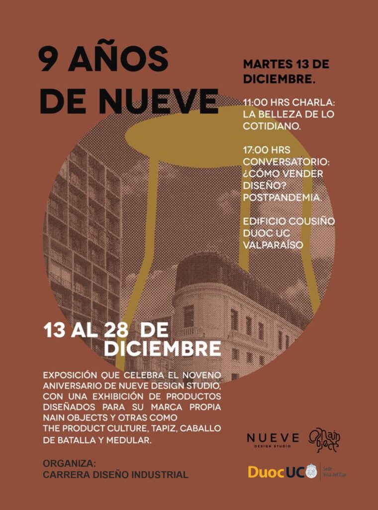 Nueve Design Studio está de aniversario y lo celebrará con diversas instancias: como charlas y una exposición que estará disponible hasta el 28 de diciembre en Edificio Cousiño (Duoc UC Valparaíso) con sus productos y prototipos.